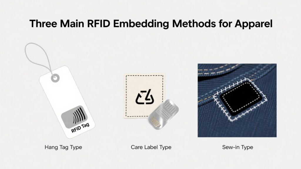 Currently, RFID tags in clothing are embedded in three common ways: